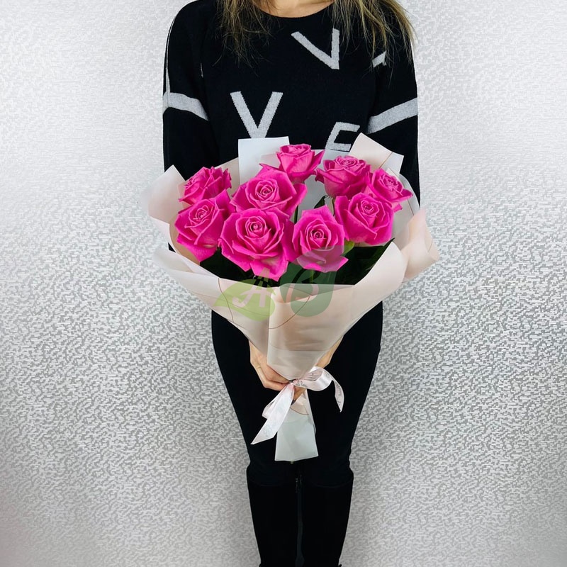 Розовые розы – удивительные цветы. Букет из благородных малиновых или нежно-лиловых роз станет уместным подарком для вашей девушки и в день её Рождения, и по случаю признания в любви. Такой букет поможет получить ее прощение после размолвки.